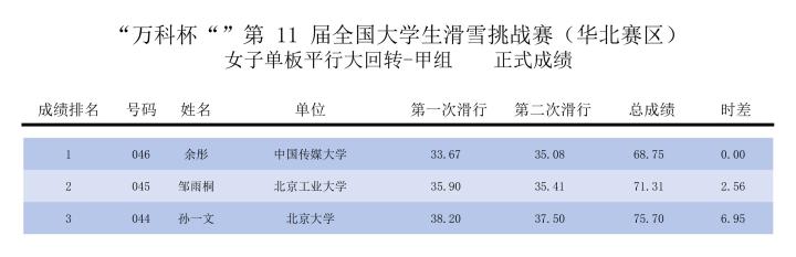 比賽設(shè)有女子高山大回轉(zhuǎn)、男子高山大回轉(zhuǎn),女子單板平行大回轉(zhuǎn)、男子單板平行大回轉(zhuǎn)個(gè)人以及團(tuán)體比賽項(xiàng)目。經(jīng)過兩天的激烈角逐,選手們都展現(xiàn)了高超的滑雪技術(shù),最終的獲獎(jiǎng)名單也已新鮮出爐,快來看看吧!
